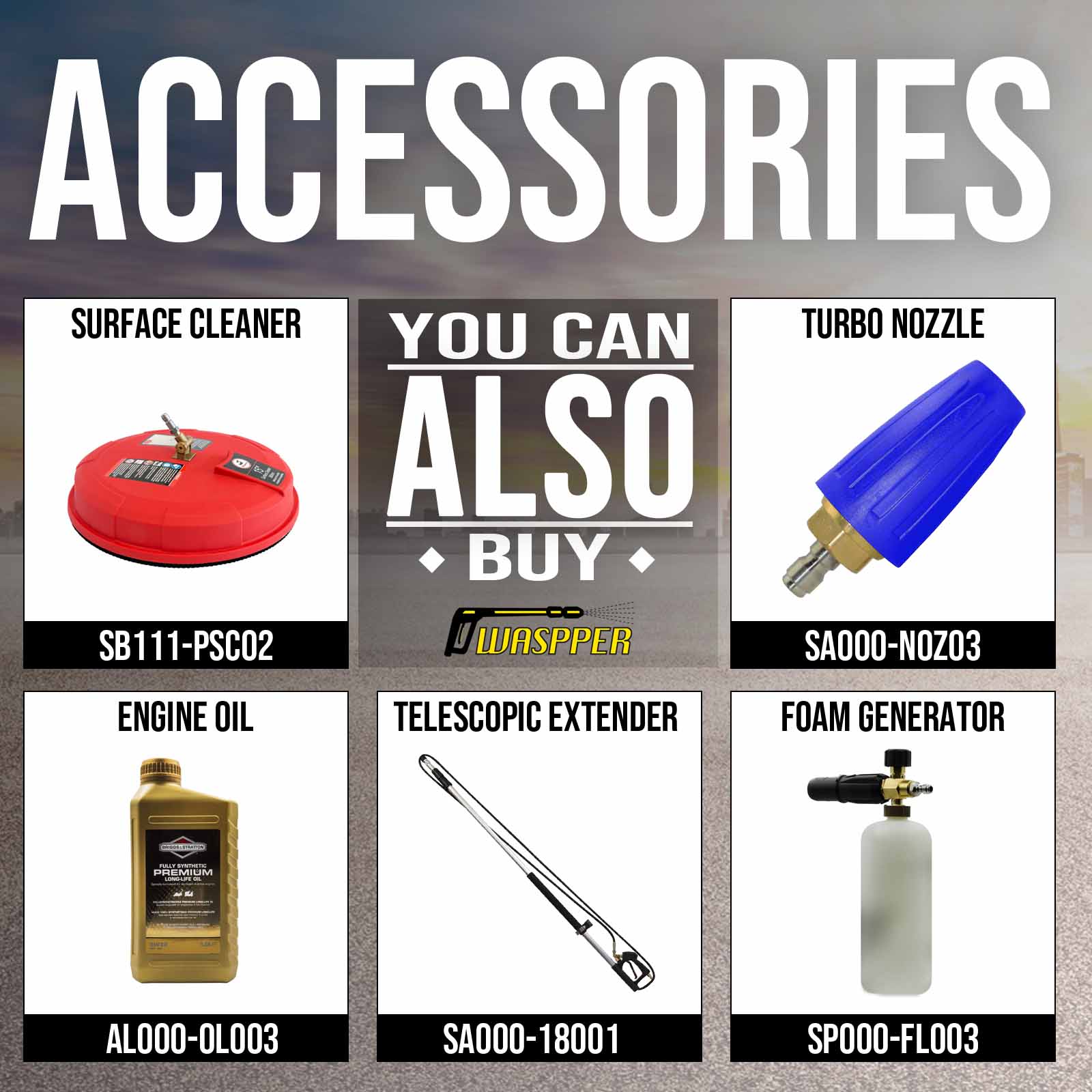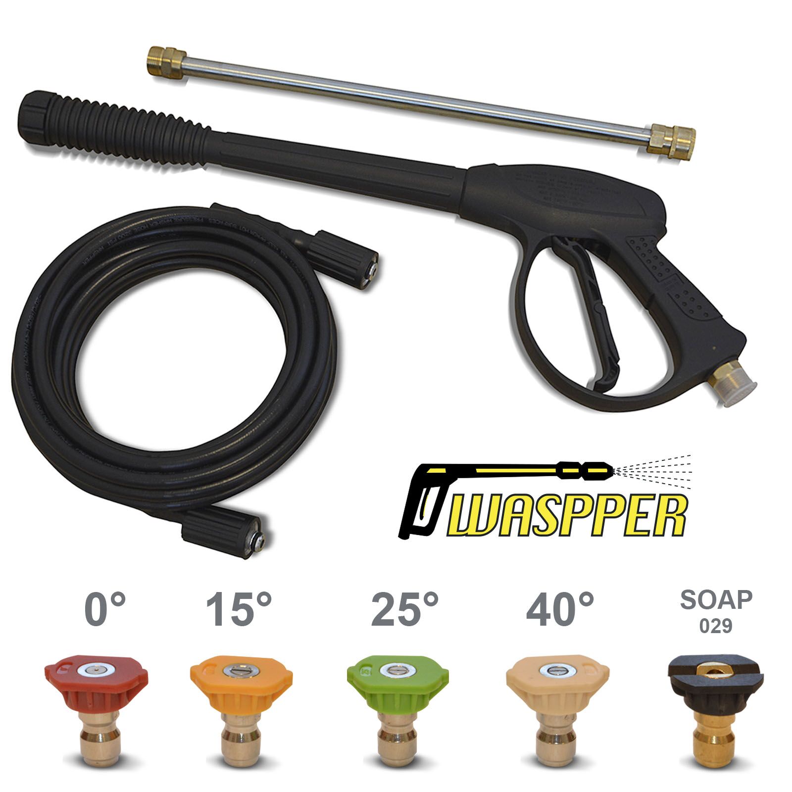 - You can simply change the accessories (e. i. longer hose than supplied one, lances, guns, nozzles)