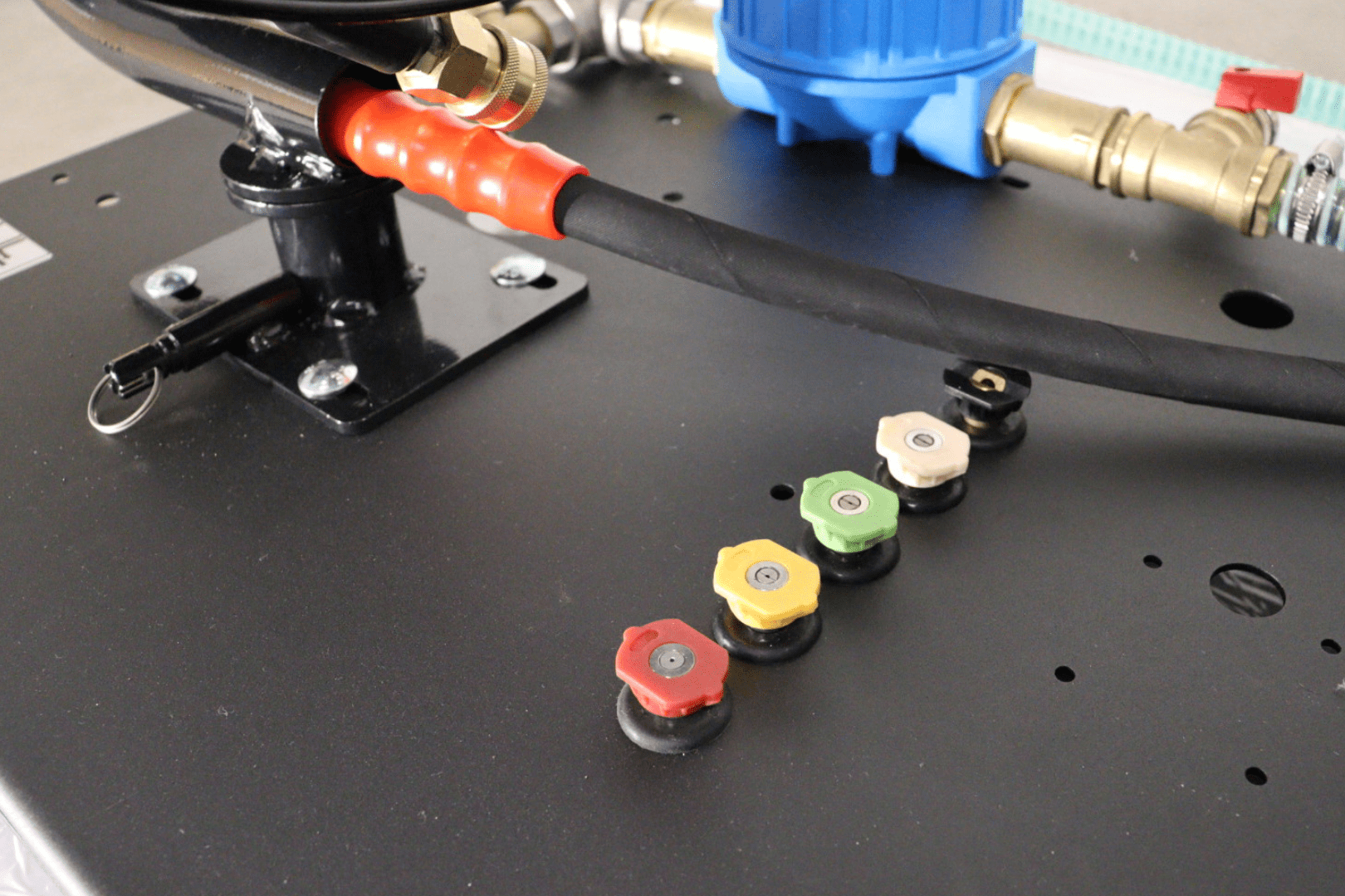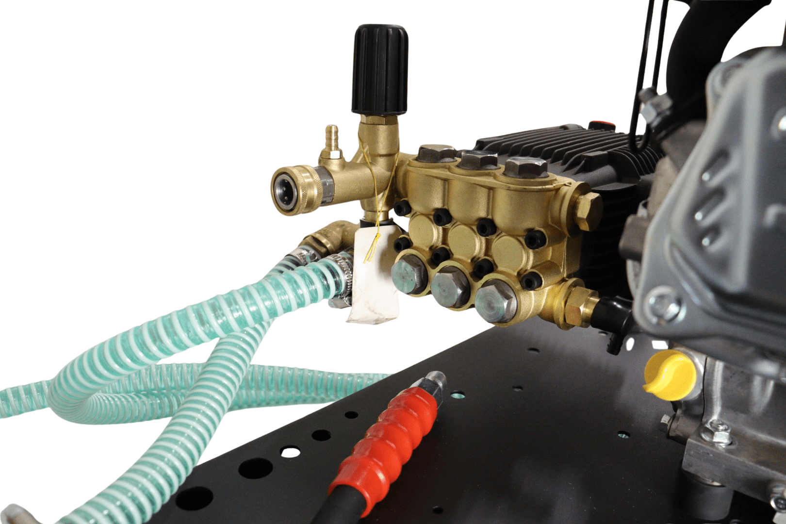 At the heart of the platform is the 3WZ1507A radial brass pump, delivering up to 3800 psi / 265 bar working pressure, a water flow of 14 l/min, and compatibility with water temperatures up to 40 °C. The pump includes a self-priming function and an adjustable pressure regulator within the range of 80–220 bar, allowing precise tuning for various cleaning tasks.