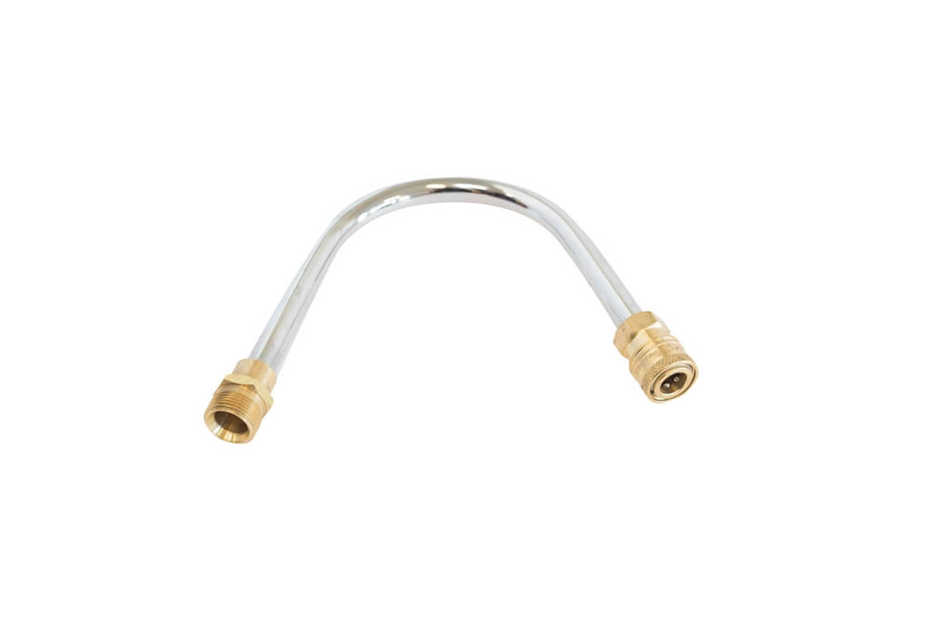 Curved stainless steel extension for the spray gun. The nozzle can be installed to the M22x1.5 stainless + QC brass. This curved spray gun extension is directly installed on the output side of the spray gun.