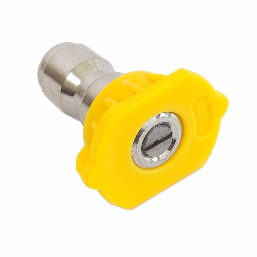 Žltá tryska 15° sa používa na betón, tehly a iné tvrdé povrchy s odolnými škvrnami.