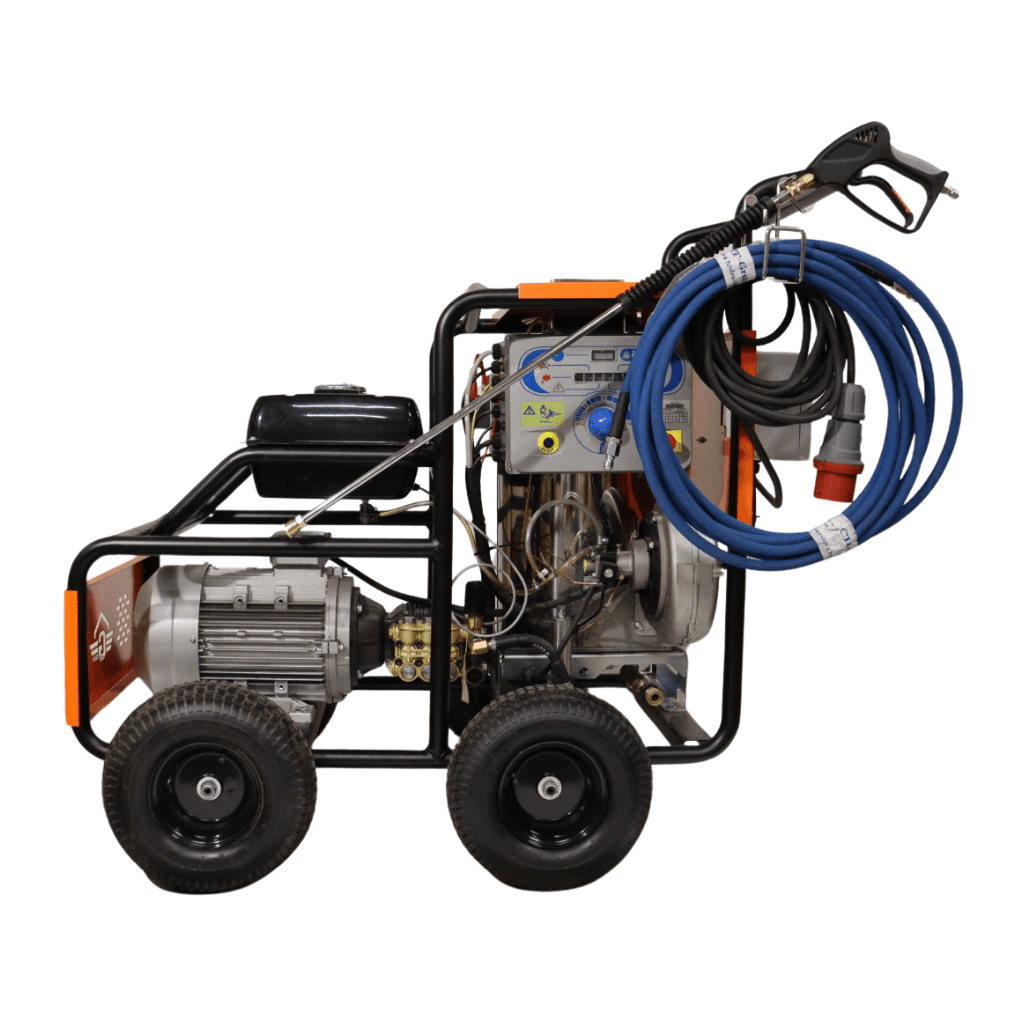- Horúca voda až do 150 °C – Dieselový ohrievač zvyšuje účinnosť čistenia o desiatky percent — horúca voda rozkladá mastnotu, olej, špinu a priemyselné nánosy oveľa rýchlejšie než studená.