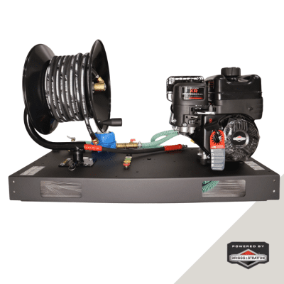 Táto kompaktná motorová platforma je poháňaná spoľahlivým motorom Briggs & Stratton XR950, ktorý poskytuje stabilný výkon pre ľahké až stredne náročné profesionálne použitie. Motor má horizontálnu hriadeľ, OHV konštrukciu, mechanický sytič, reguláciu otáčok a bezpečnostný systém pri nízkej hladine oleja. Štartovanie je riešené ručným štartérom (recoil), takže zariadenie funguje spoľahlivo aj bez prístupu k elektrickej sieti.
