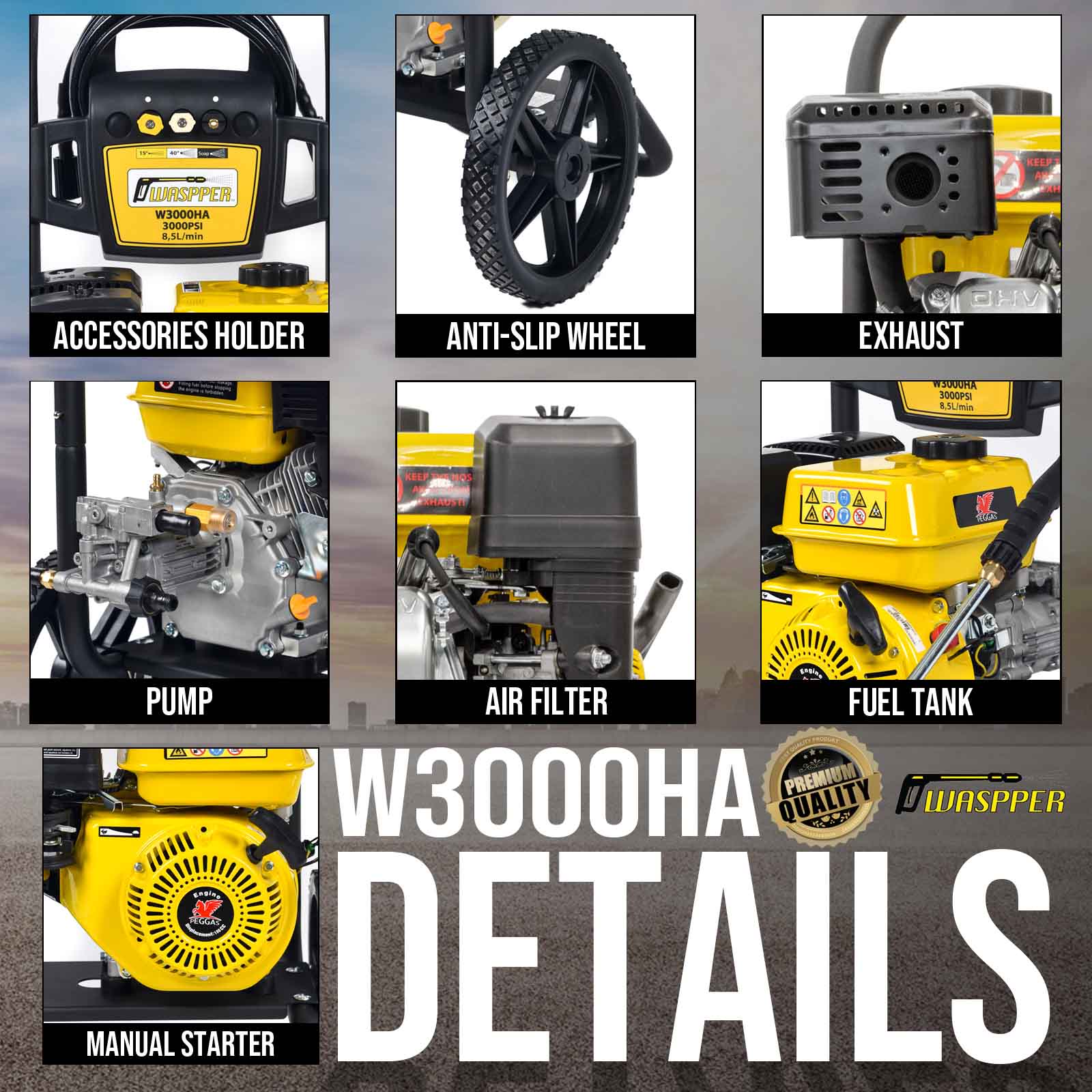 Kľúčové vlastnosti vysokotlakového čističa Waspper W3000HA: